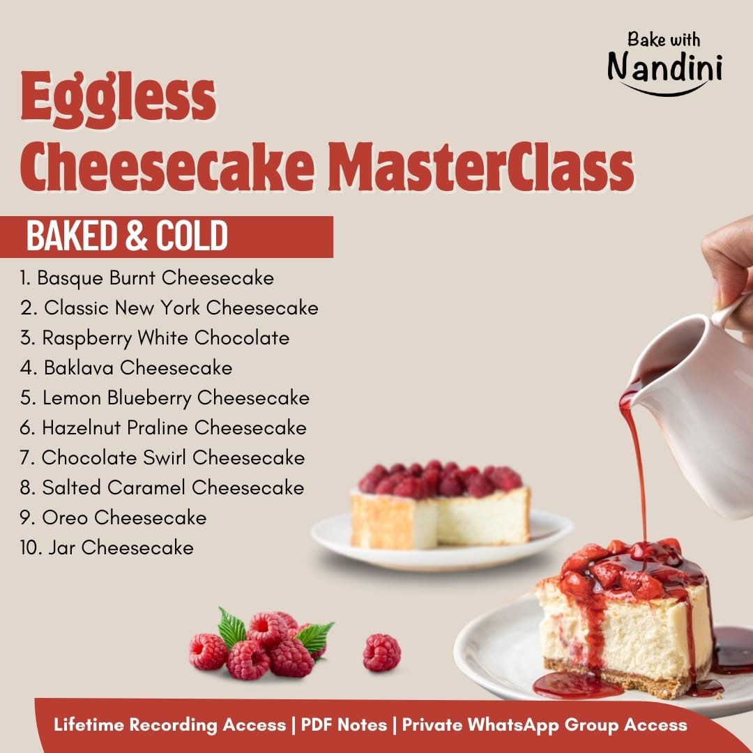 Bake with Nandini is here with an Exciting Workshop on Eggless Cheesecakes, where you will Learn the Recipes and Techniques in making the Most Perfect, Delicious & 10+ Different types of Cheesecake at home!