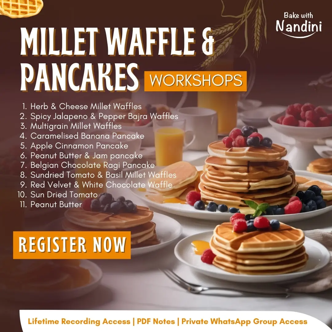 Bake with Nandini is here with an Amazing Class, where you will learn to make 11 Types of Delicious, Amazing, & Perfect Millet waffles & Pancakes Workshop at Home. (With Easily Available Ingredients)